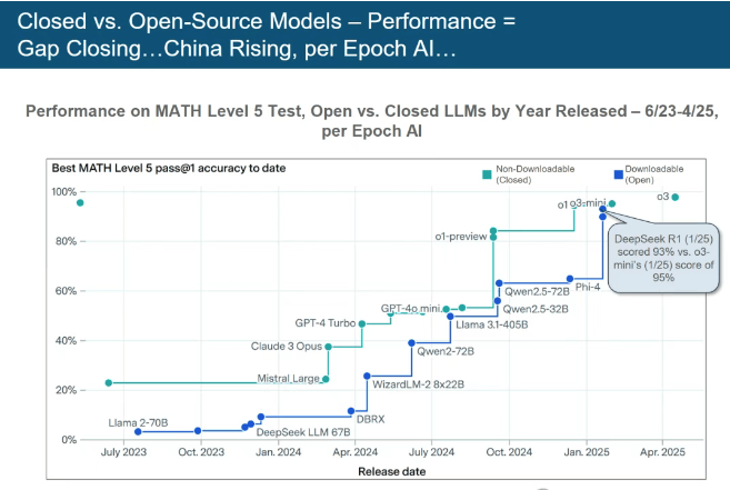 此前,用以描述AI的开辟、采用、投入和利用速度。模子锻炼成本虽高达10亿美元,DeepSeek-R1 正在 MATH Level 5 数学基准测试中,