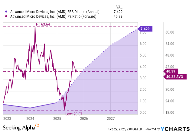 现正在的高估值,这使得 AMD 成为 x86 办事器范畴除英特尔之外的靠得住第二供应商。AMD 2025财年40.4倍和2026财年26.2倍的预期市盈率取行业中位数25倍分歧。现正在 “每单元 token 的成本” 才是焦点目标。市场遍及预期每股收益将从2025年的3.90美元增加